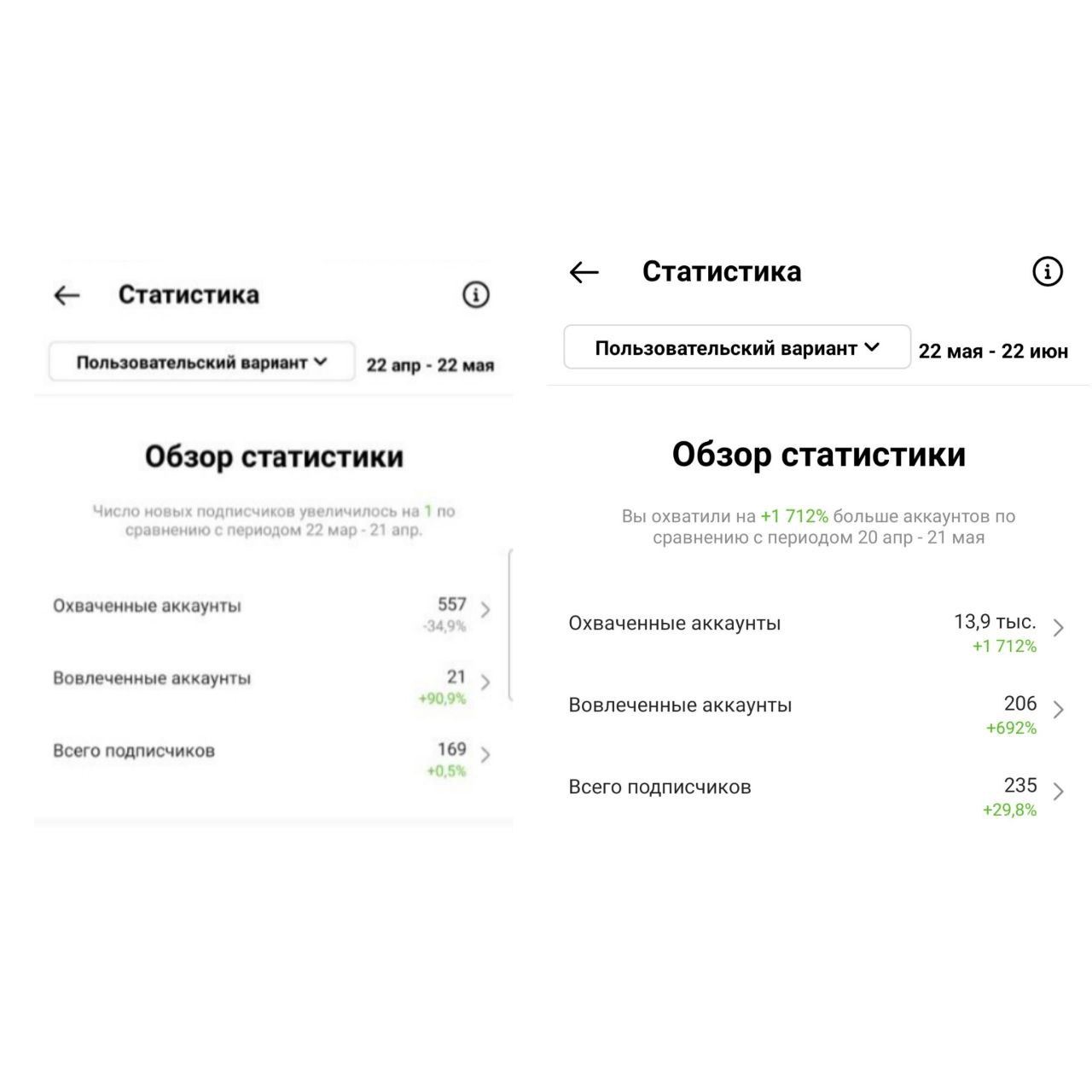Сейчас приведу данные статистики по охватам в Инстаграм (запрещен в РФ) за месяц, по отношению к предыдущему месяцу ⤵️